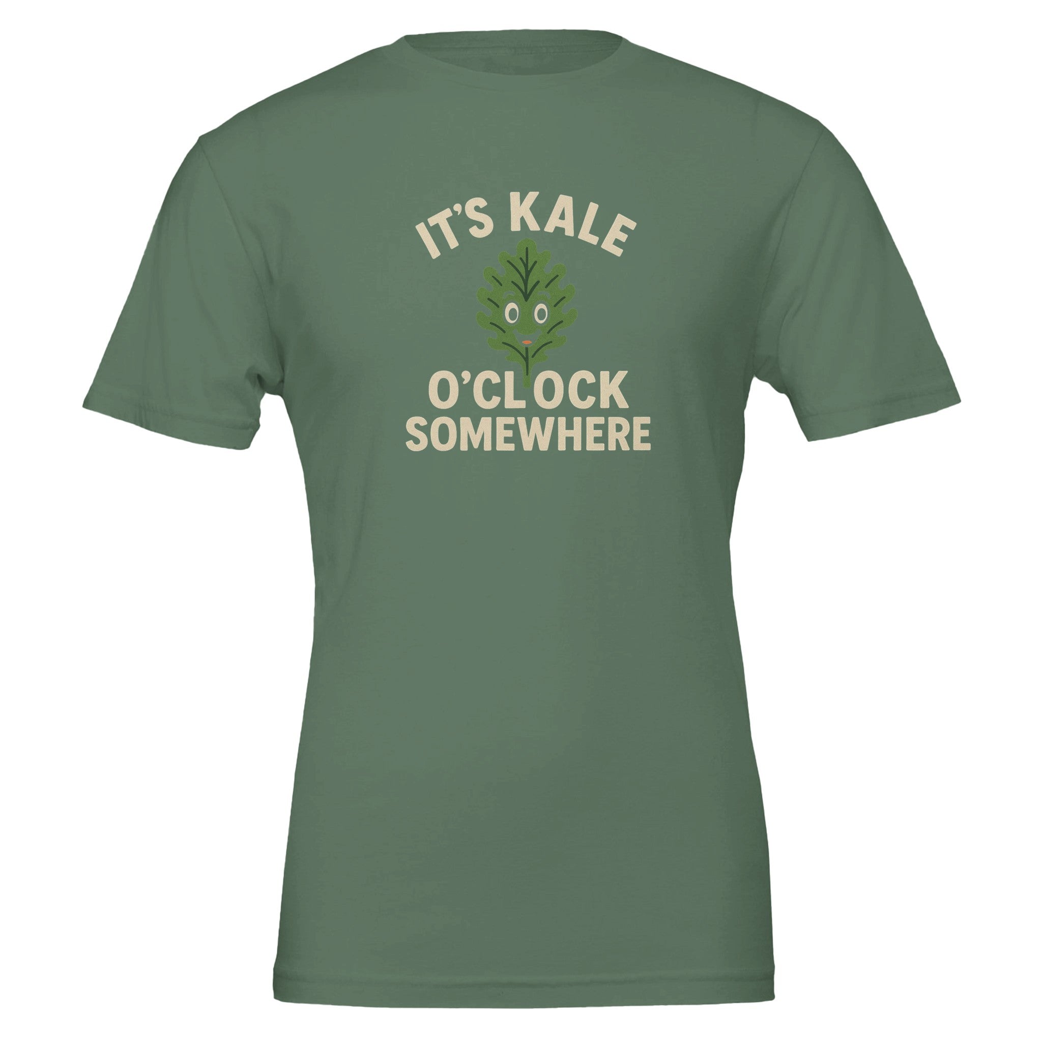 Embrace your love for healthy living with our funny vegan t-shirt featuring the humorous phrase, "It's Kale O'Clock Somewhere!" This playful take on a classic expression is perfect for anyone who enjoys a plant-based lifestyle and values a good laugh. Made from premium Bella + Canvas 3001, this t-shirt offers unparalleled comfort and quality...renowned for its soft feel and sturdy construction.